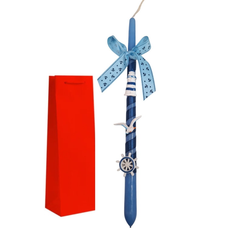 Πασχαλινή λαμπάδα με ΝΑΥΤΙΚΟ ΘΕΜΑ  με υπέροχα υλικά και κορδέλες, που θα κλέψει τις εντυπώσεις .