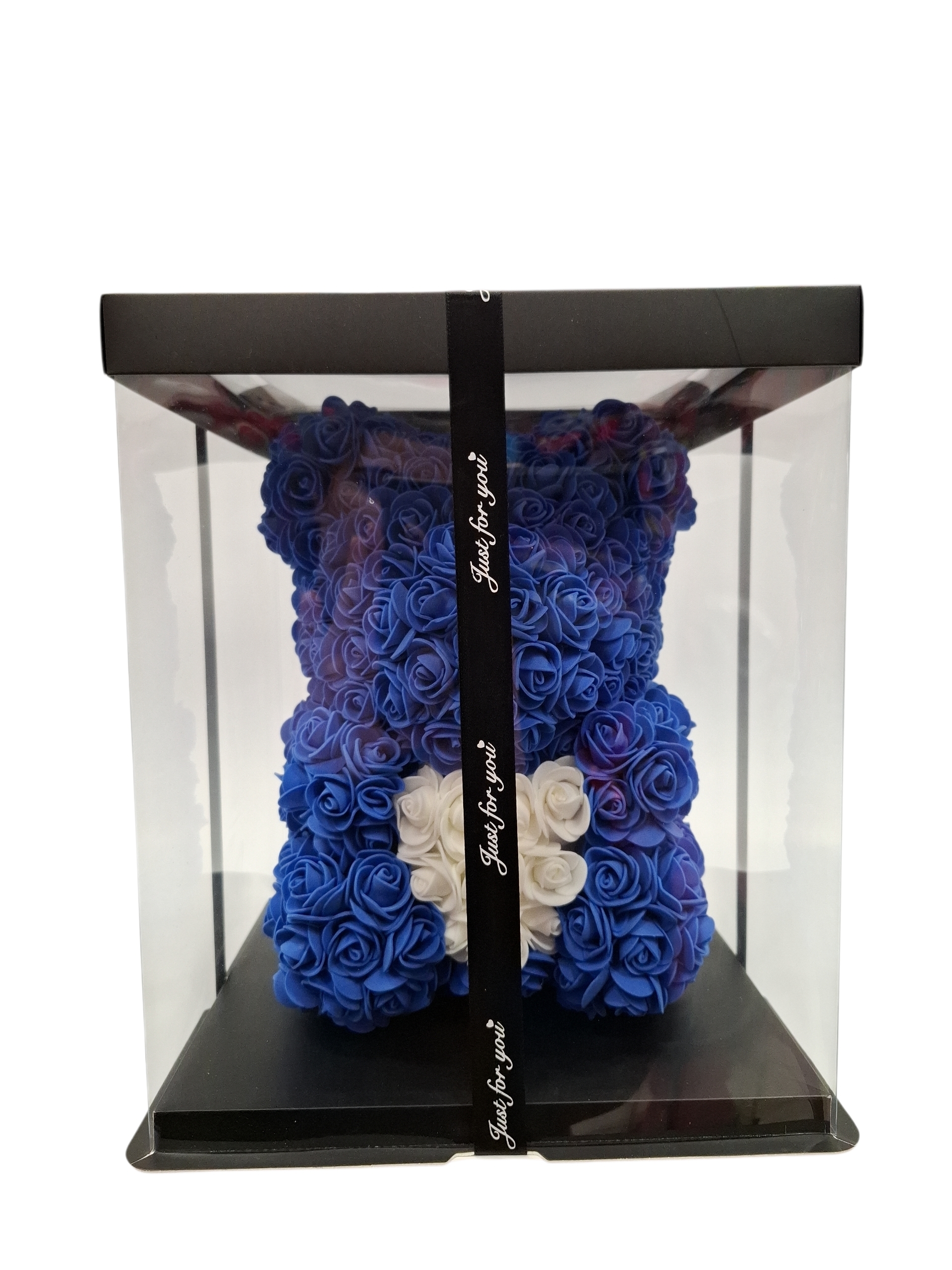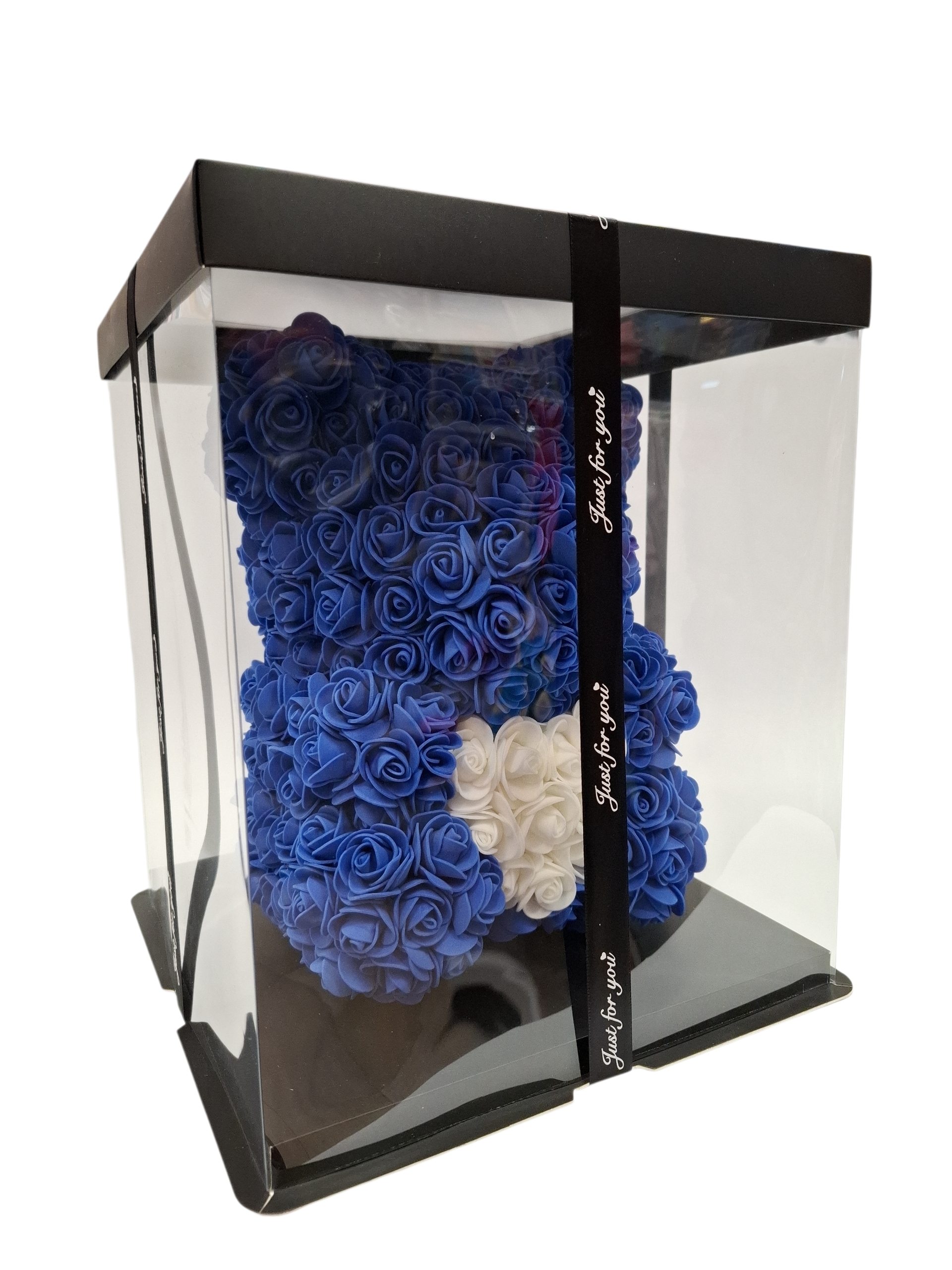 ΑΡΚΟΥΔΑΚΙ ΑΠΟ ΤΕΧΝΗΤΑ ΤΡΙΑΝΤΑΦΥΛΛΑ ΜΠΛΕ ΡΟΥΑ ΚΑΙ ΚΑΡΔΙΑ ΛΕΥΚ, ΣΕ ΣΥΣΚΕΥΑΣΙΑ ΔΩΡΟΥ 32CM