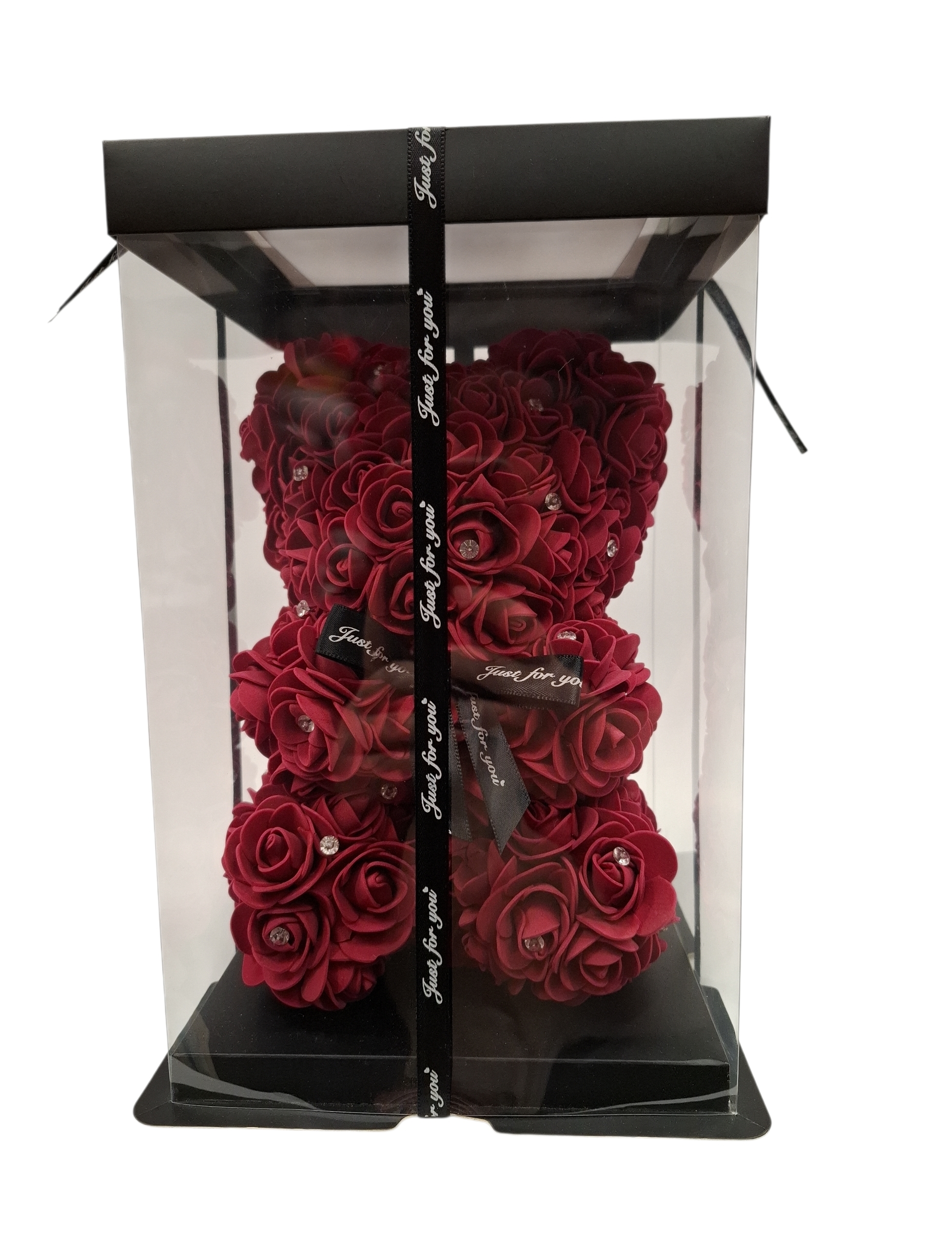 ΑΡΚΟΥΔΑΚΙ ΑΠΟ TEXNHTA ΜΠΟΡΝΤΟ ΤΡΙΑΝΤΑΦΥΛΛΑ ΚΑΙ ΣΤΡΑΣ, ΣΕ ΣΥΣΚΕΥΑΣΙΑ ΔΩΡΟΥ 30CM.