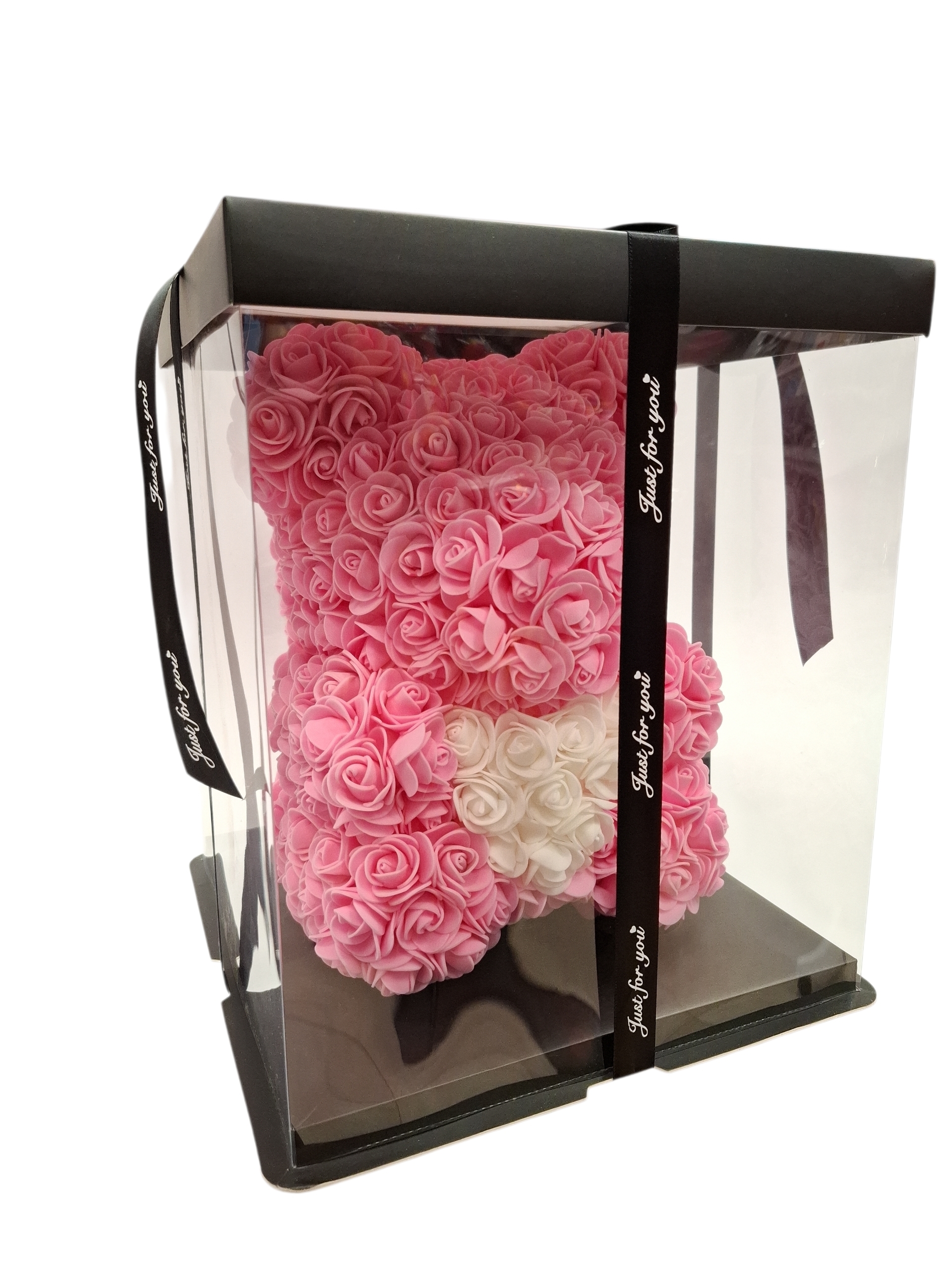 ΑΡΚΟΥΔΑΚΙ ΑΠΟ TEXNHTA ΡΟΖ ΤΡΙΑΝΤΑΦΥΛΛΑ ΚΑΙ ΚΑΡΔΙΑ ΛΕΥΚΗ, ΣΕ ΣΥΣΚΕΥΑΣΙΑ ΔΩΡΟΥ 32CM.